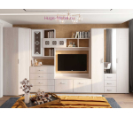 Компактный угловой шкаф с полками и штангой для одежды поможет использовать всё пространство гостиной или спальни для хранения и сочетается с другими шкафами и пеналом Белла. Ширина шкафа по стене 74,7 см, высота 212 см. Угловой шкаф выпускается в светлом оттенке дерева ясень белый.