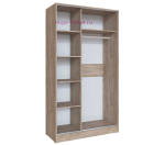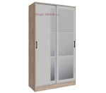 Небольшой шкаф купе шириной 120 см и высотой 220 см с двумя раздвижными дверьми и зеркалом. Внутри шкафа стационарная штанга и отсек с полками. Зеркала с фацетной обработкой. Недорогой шкаф-купе выпускается фабрикой в нескольких цветовых решениях, в том числе в сочетании декоров под дерево дуб крафт серый со светло-серым фасадом.