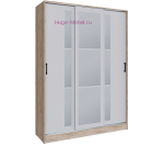 Шкаф купе шириной 160 см и высотой 220 см с тремя раздвижными дверьми и зеркалом. Шкаф-купе 1.6 метра выпускается фабрикой в нескольких цветовых решениях, в том числе в цвете дуб крафт серый со светло-серым фасадом. Внутри шкафа штанга длиной 103 см и отсек с полками. Зеркала с фацетной обработкой.