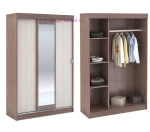 Недорогой шкаф купе с большим зеркалом выполнен в приятном сочетании цветов. Шкаф с тремя дверями купе и двумя отделениями. Наполнение шкафа: слева отделение с тремя полками, справа штанга. Полки над штангой нет.