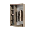 Шкаф-купе шириной 130 см и высотой 2 метра с зеркальной створкой. Небольшие размеры шкафа купе позволяют разместить его в прихожей, гостиной или детской. Внутри шкафа два отделения: отсек с полками шириной 42 см и отсек со штангой для одежды. Шкафы-купе выпускаются в нескольких цветах и сочетаются с другой мебелью фабрики. Боковые стенки шкафа-купе и его центральная створка выполнены в более темном оттенке, чем две боковые створки.