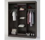 Недорогой шкаф купе с тремя отделениями: два отделения со штангами и центральное отделение с полками. Центральные дверцы распашные, боковые двери-купе (откатные). Изюминкой шкафа стало интересное решение зеркальных вставок на фасадах. Несмотря на невысокую стоимость, шкаф очень вместительный и имеет его общая длина 160 см, а высота 210 см.