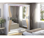 Недорогой и вместительный шкаф-купе в светлом цвете дуб Анкор и зеркалами. Высокий шкаф купе с выдвижными ящиками, полками и штангой для одежды на плечиках подходит для спальни и гостиной.