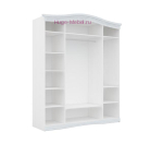 Вместительный 4-створчатый шкаф для спальни Гертруда. Шкаф без зеркал, декорирован изящным карнизом, МДФ фасады, петли с доводчиками. Внутри шкафа три отделения: центральное со штангой для одежды и двумя полками, боковой отсек со штангой и тремя полками и отделение с пятью полками.