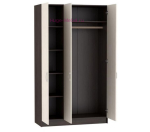 Недорогой 3-х створчатый распашной шкаф для одежды с двумя отделениями внутри: отсек со штангой и полками.