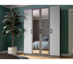 Удобный 4-х створчатый шкаф с зеркалами и тремя отделениями внутри: центральная часть со штангой и два боковых отсека с полками. Четырехстворчатый шкаф высотой 220 см и шириной 160 см в цвете графит со створками в более светлом оттенке серый камень. Шкаф из серии Вегас фабрики ТЭКС выпускается в нескольких размерах: шириной 40, 80, 120, 160 и 200 см. Шкаф может быть включен в состав спального гарнитура Вегас в том же цвете.