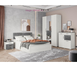 Трехстворчатый шкаф с двумя выдвижными ящиками и тремя отделениями внутри: центральное с полками и два отсека со штангой. Удобный платяной шкаф из серии мебели в спальню Теана. Шкаф с зеркалом в светлом оттенке дерева со вставками из МДФ "мрамор дарк".