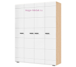 Вместительный четырехстворчатый шкаф шириной 160 см с глянцевыми белыми фасадами и корпусом в светлом оттенке дерева. Внутри шкафа за боковыми створками отсеки с четырьмя полками, за двумя центральными дверцами шкафа отделение со штангой для одежды на плечиках. Шкаф шириной 160 см без зеркал входит в серию мебели Либерти и подходит для любого помещения. Шкафы Либерти выпускаются в нескольких размерах, угловые шкафы и пеналы могут отлично сочетаться друг с другом.