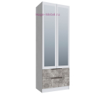 Платяной шкаф с 2 выдвижными ящиками и зеркальными створками. Шкаф белого цвета и фасадами с декором ателье. Внутри шкафа штанга для одежды на плечиках и полка, внизу два вместительных ящика. Шкаф входит в серию Мадрид и сочетается с другими угловыми и прямыми шкафами, стеллажами и пеналами.