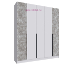 Пятистворчатый шкаф шириной 2 метра с тремя выдвижными ящиками внутри. Шкаф белого цвета с фасадами в светло-сером декоре ателье. Шкаф без зеркал внутри разделен на три отсека: два отделения со штангами для одежды, длина каждой штанги 77 см, и отсек с 4 полками под которыми расположено 3 выдвижных ящика. Отделения со штангами для одежды на плечиках дополнительно укомплектованы двумя полками шириной 77 см. Ширина полок в центральной части шкафа 38,2 см. Ширина каждой из пяти дверей шкафа 39,6 см, двери с накладными ручками черного цвета. Шкафы Мадрид высотой 230 см может быть дополнен антресолью высотой 30 или 40 см, антресоли покупаются отдельно.