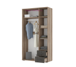 Недорогой 3-х створчатый шкаф для одежды с полками, штангой и выдвижными ящиками на шариковых направляющих. Высокий и вместительный шкаф Нельсон выпускается в двух цветовых решениях: дуб каньон/железный камень и дуб крафт белый.