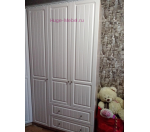 Качественный распашной шкаф для одежды с выдвижными ящиками для спальни Богуслава. Шкаф с кремовыми фасадами и боковыми стенками с отделкой под дерево в стиле прованс.