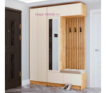 Недорогой шкаф для одежды шириной 90 см с полками и штангой внутри. Шкаф входит в серию мебели для прихожей Руэлла. Створки шкафа в светлом оттенке "кашемир" открываются нажатием.
